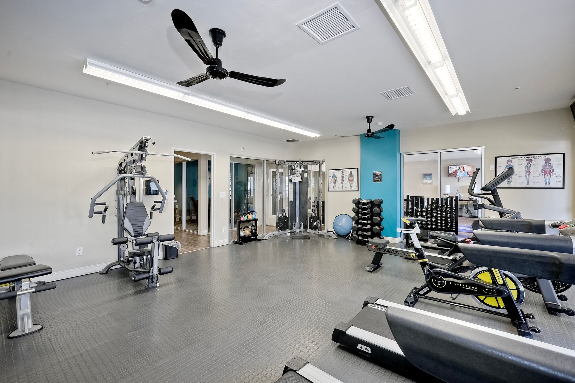 * 24-Hour Fitness Center with State-Of-The-Art Life Fitness Cardio and Strength Equipment